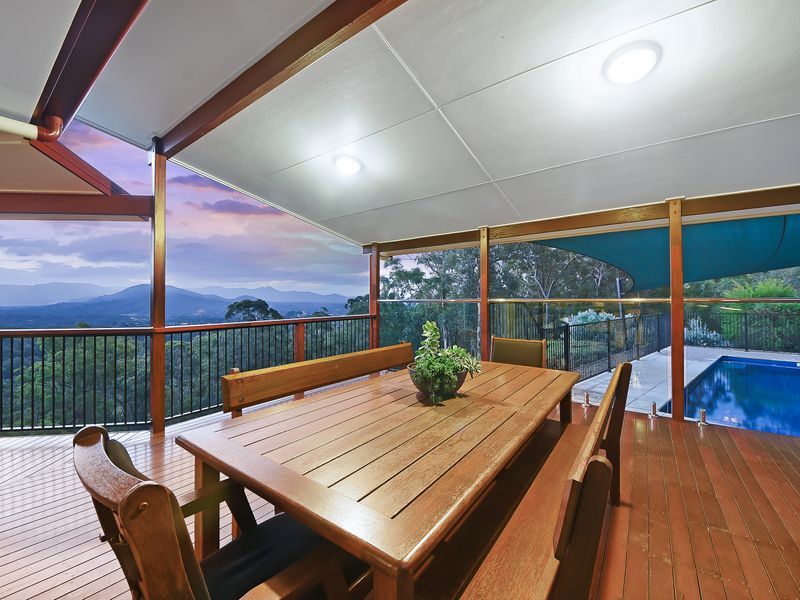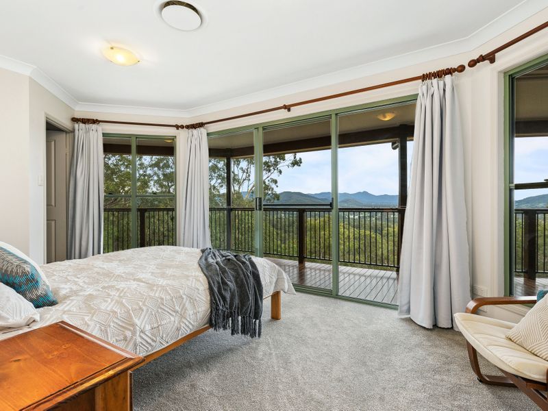 A classic timber and glass entryway welcomes you to the residence, where once inside, vast open plan living spaces are revealed. The abundant use of glass doors, panels and over-sized windows fill the interiors with natural light whilst effortlessly capturing the sensational mountain vista that spans the valley to the DAguilar ranges and beyond.